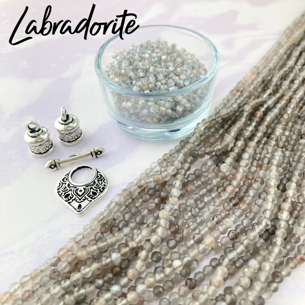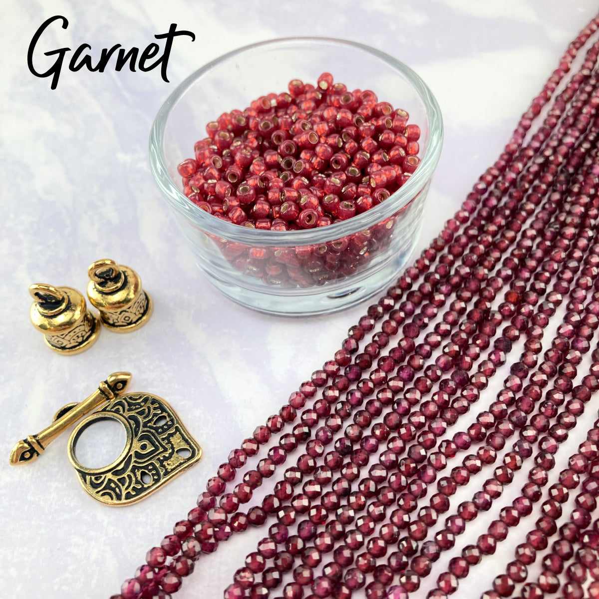 The Beyond the Horizon bracelet is a half beaded kumihimo, half strung gemstone design featuring a focal clasp and clear quartz dangle. If you're not into metaphysical stuff, choose your bracelet kit by their gorgeous colors. If you enjoy contemplating magic, these are the properties often attributed to the stones: