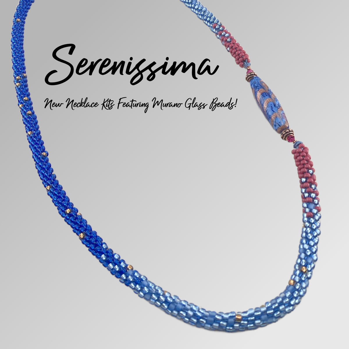 La Serenissima beaded kumihimo necklace features a sophisticated three color ombré with metallic accents to coordinate with the pendant. You'll finish your necklace with stainless steel magnetic endcaps and conceal those beneath color coordinating peyote stitch endcap covers. The Delica beads for the endcap covers are match to one of the seed bead colors in the necklace and feature the same metallic accents.