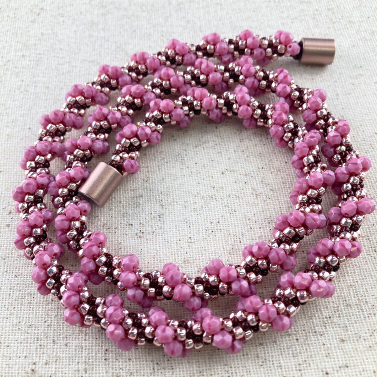 The Whirlwind features a gorgeous textural spiral of fire polished and seed beads. This is a great introduction to counted patterns. Whirlwind is a kumihimo kit for all levels.